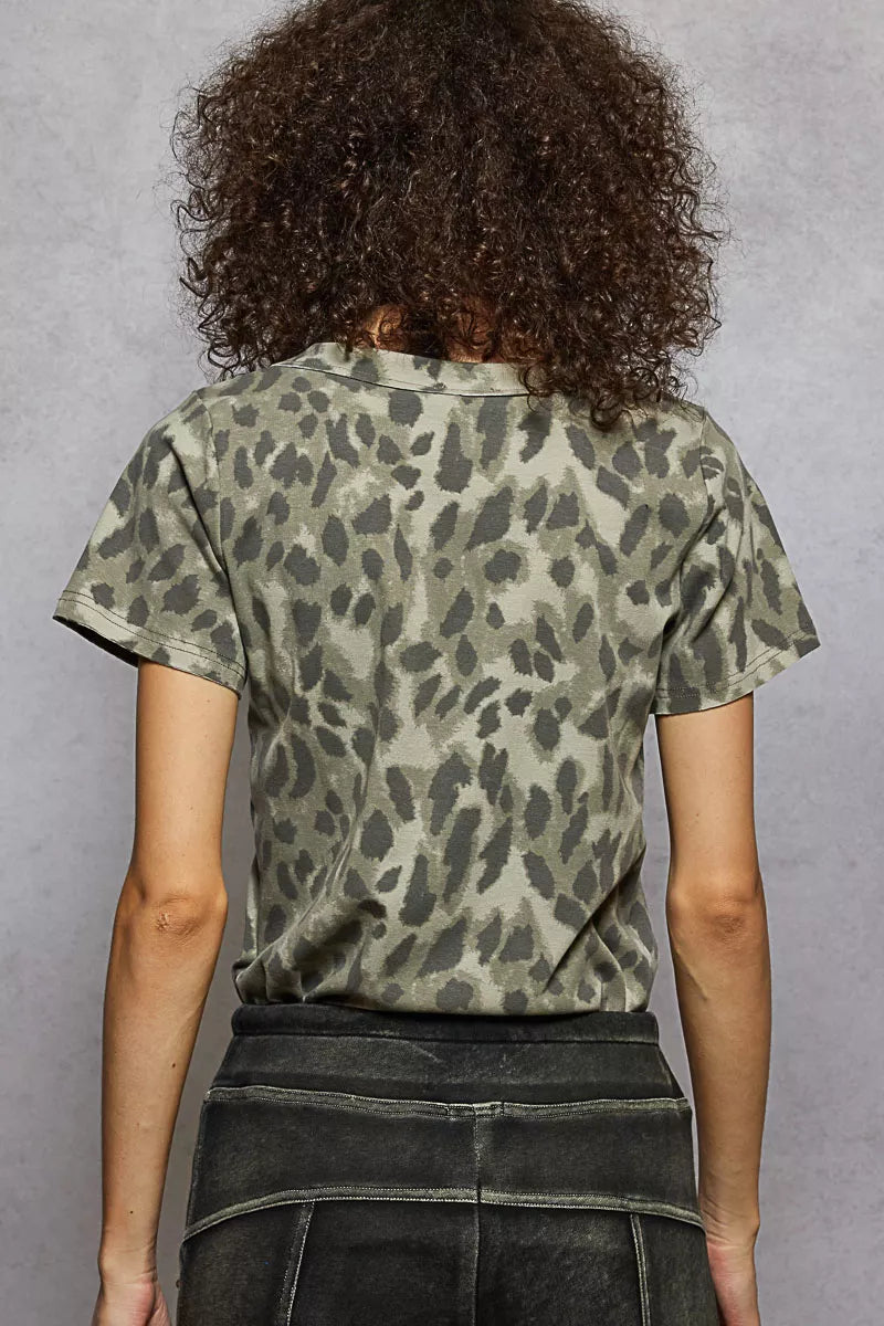 POL Printed V-Neck Short Sleeve T-Shirt