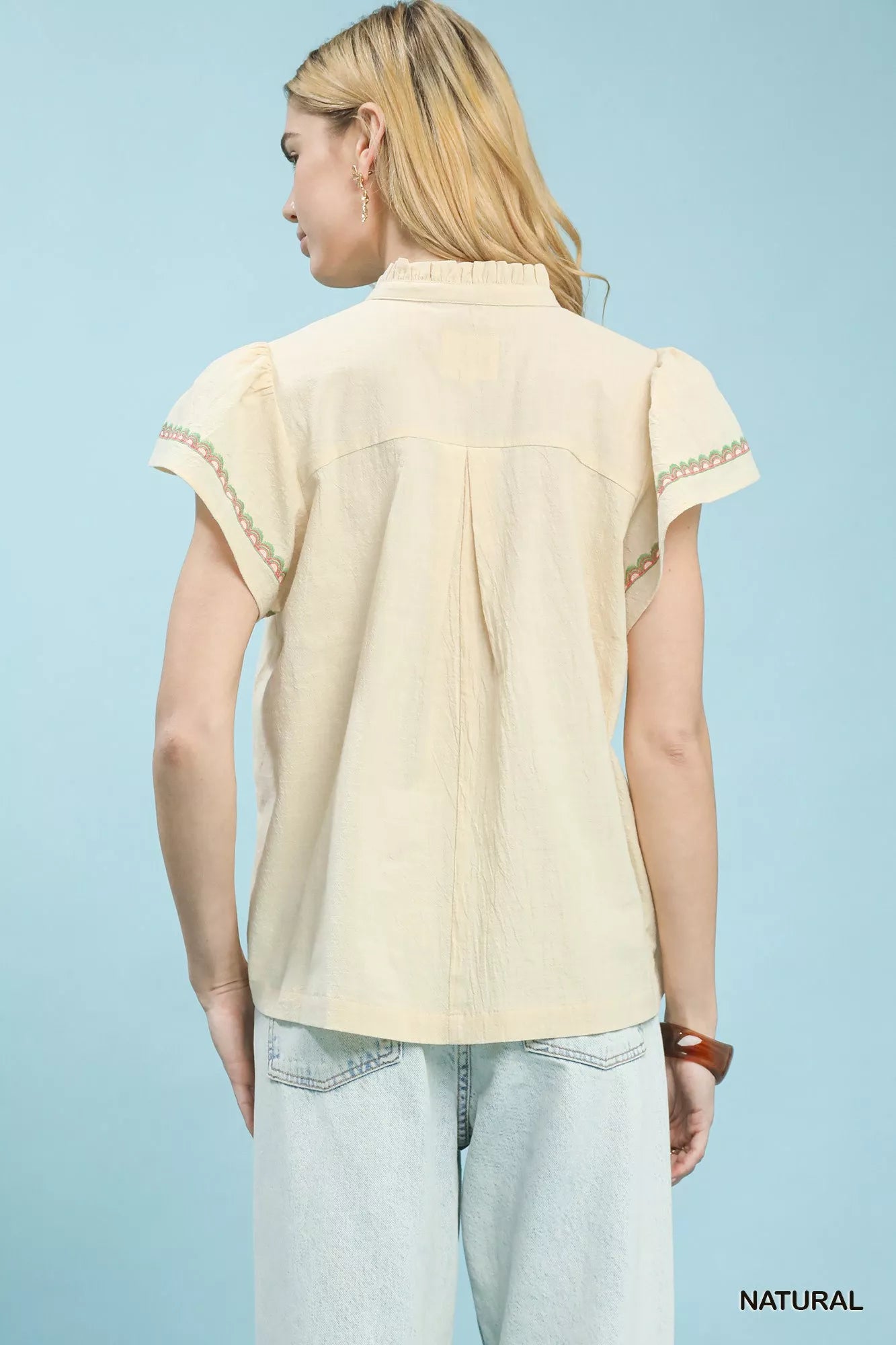 Umgee Embroidered Flutter Sleeve Blouse